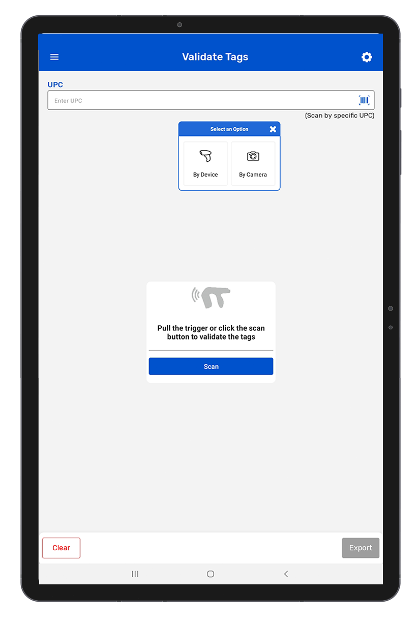 Tags matching a particular UPC code can be filtered. We can scan or enter the UPC by following below options: