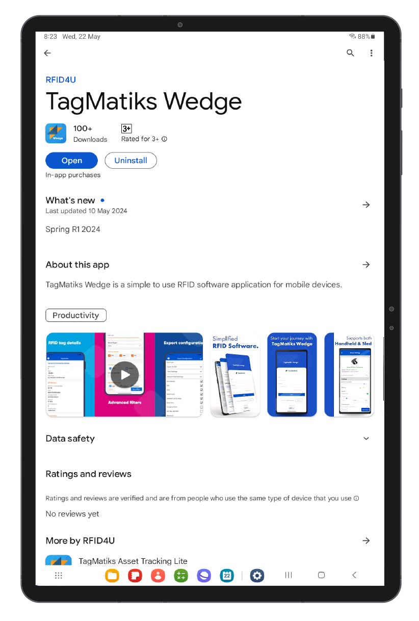 TagMatiks Wedge App can be downloaded from the Play Store by using the link below from an Android device. You can use up to 500 scans at no cost per RFID device.