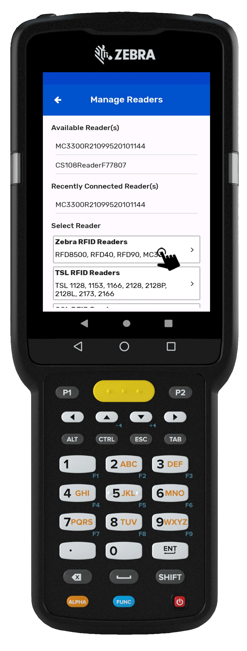 5. You must select “ZEBRA RFID Reader” from the Manage Reader Page.