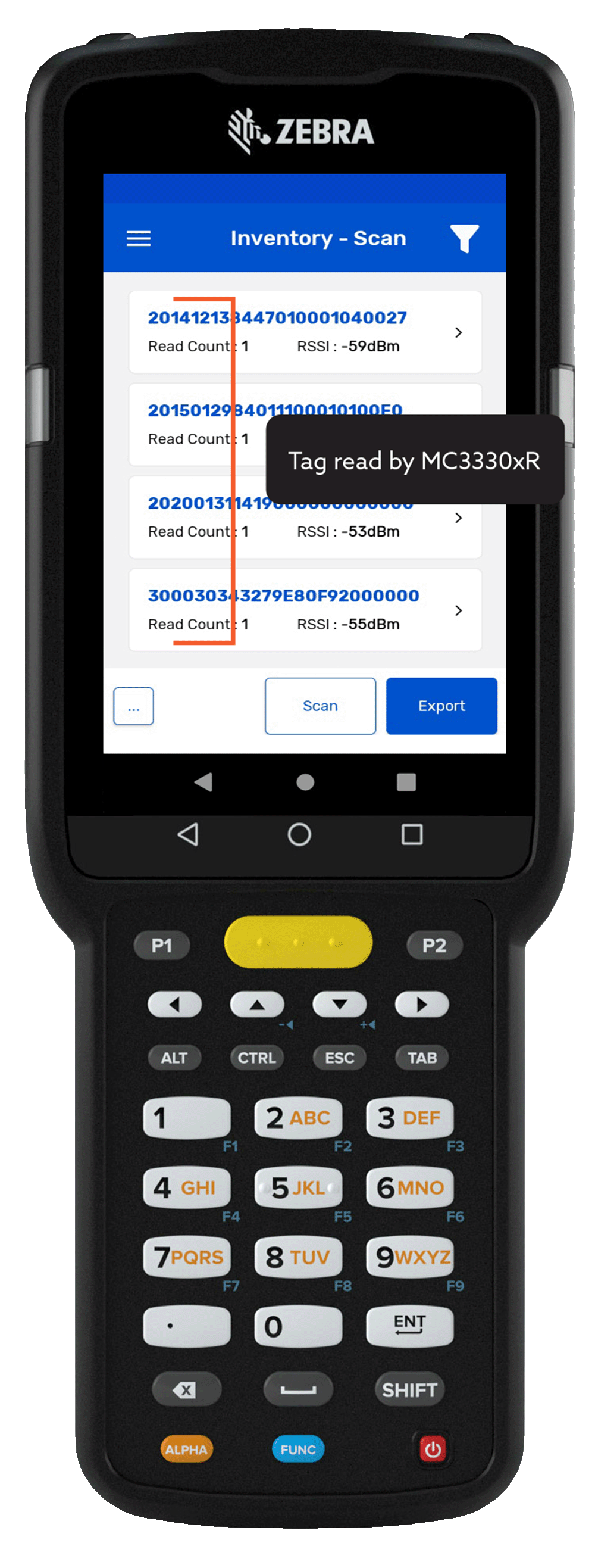 • Reading of RFID Tags using MC3300xR and MC3390xR Device using TagMatiks Wedge Application.