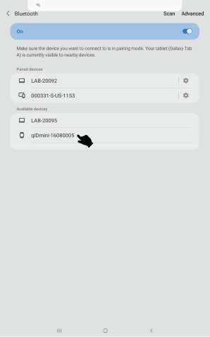 Turn on the Bluetooth of the device and select the qIDmini-XXXXXXXX followed by the ID of the device from the available device list as shown in the below image.