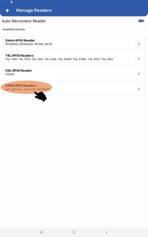 3. Tap on ‘CAEN RFID Reader” to connect Caen qID Mini with the application.