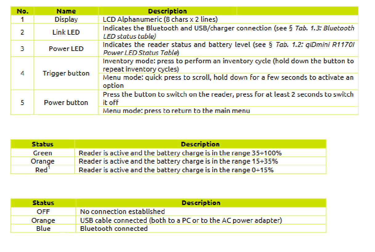 Caen qID Mini can easily be turned ON by pressing the power button. The power LED will become green in color as an indication of the reader being awake and ready to connect.