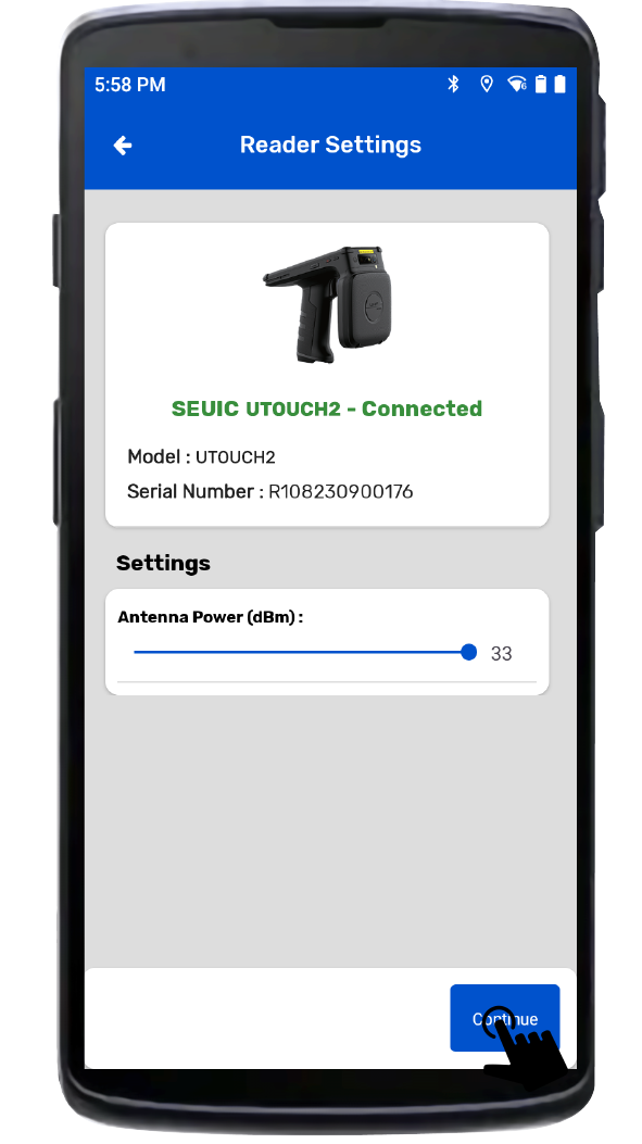 a. Turn ON the Seuic AUTOID UTouch2 reader