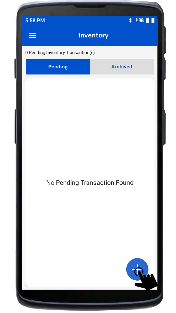2.Then a new page will open, named: “Inventory”.Create a new Inventory transaction, by Clicking the “+” button on the right bottom of the application. As shown in Fig 0.4.