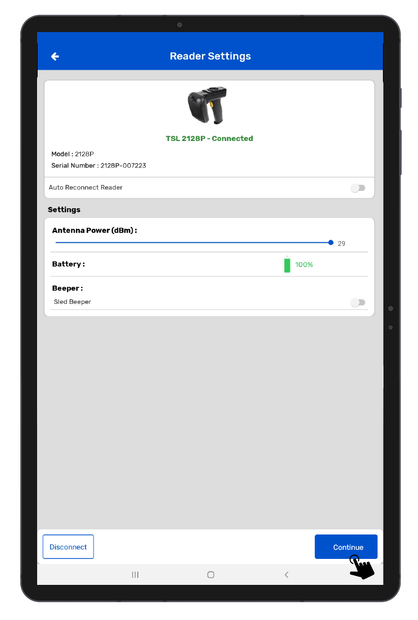 • Android should be kept near to the TSL 2128 reader.