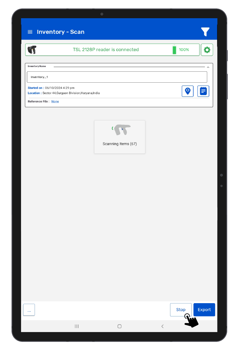 6. Once you Press the “Stop” button (on the right bottom of the application); the, reader will stop reading the tags.