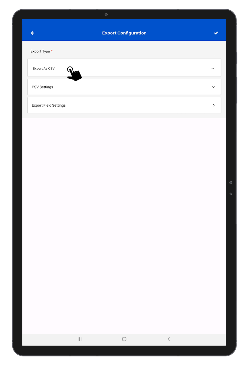4. Select the export option which you have already set in the export settings like (Export as CSV), and then select the location on the Android device where you want to save it. As shown in Fig 0.5.