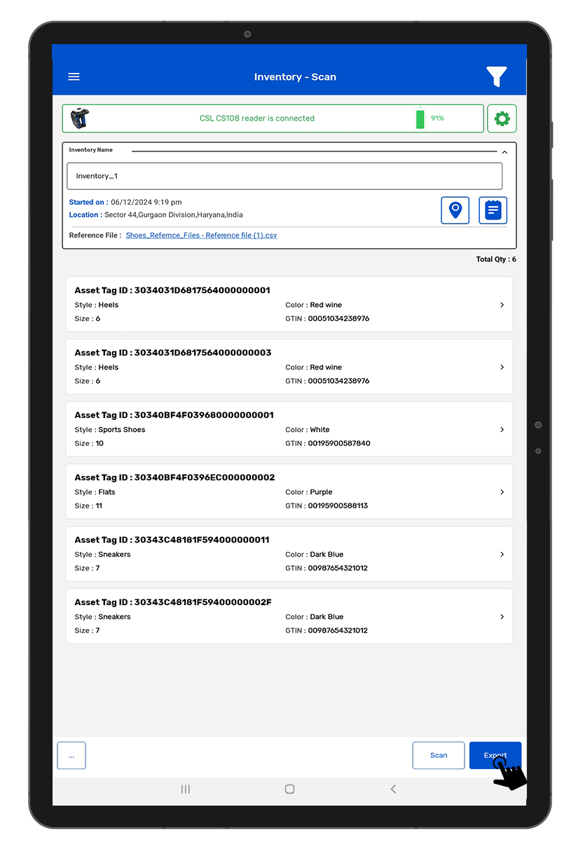 6.As a result, the inventory file of scanned items can be seen on the Android device.As shown in Fig 0.8.