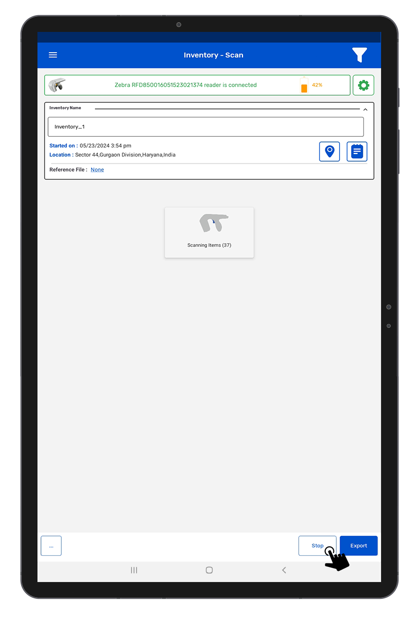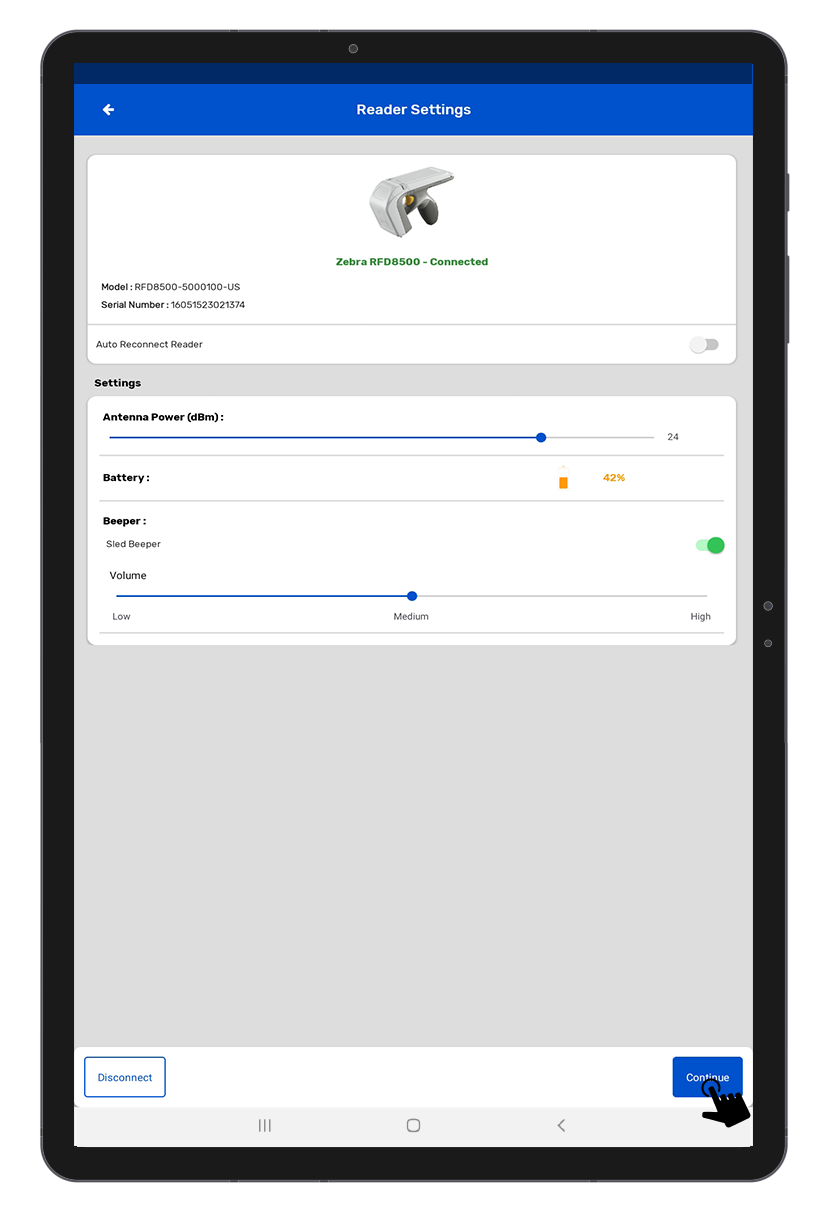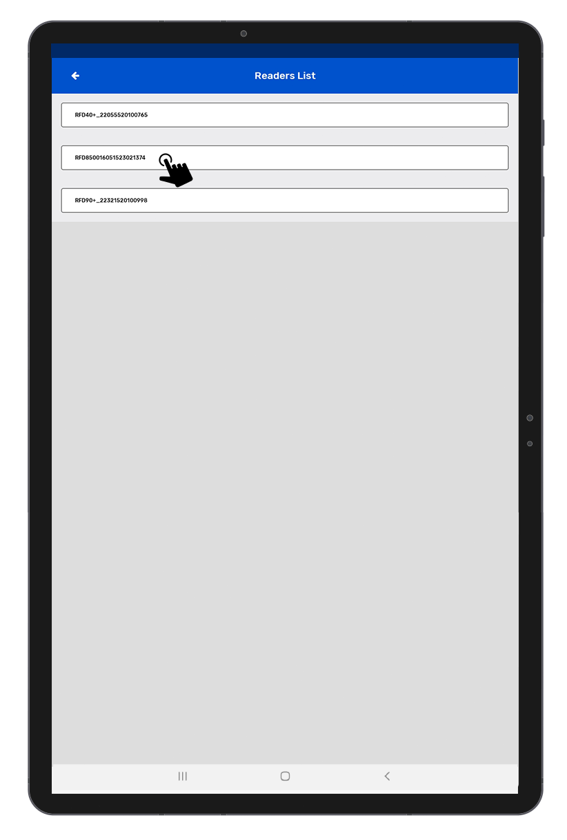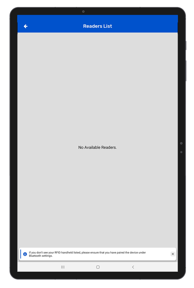 3. As no RFID reader is paired with the Android device, thus the status is showing as "Reader Disconnected".