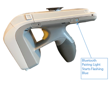 When the RFD8500 device is powered on, the “Bluetooth Pairing” LED light will automatically start flashing Blue – this indicates that the RFD8500 device is now in discoverable mode and ready to pair with a nearby Android device.
