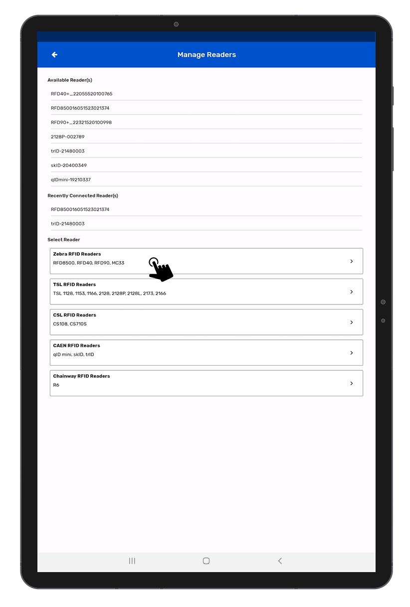 6. Select “ZEBRA RFID Readers” (highlighted in Black).