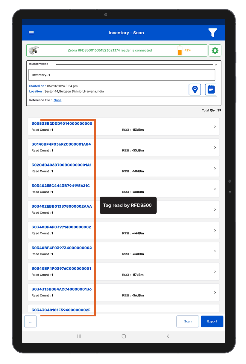 5. This means the RFD8500 reader is in polling state and reading the tags. Same can be seen in the application window. Refer below image: Fig 1.7.