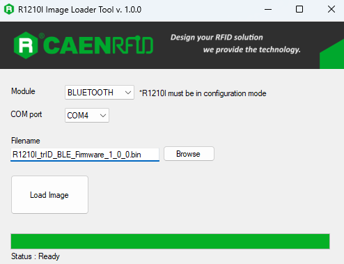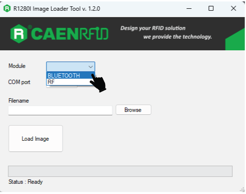 To change the Bluetooth mode from BLE to BT, the same steps are to be followed as mentioned above, only the R1210ItrID_BT_firmware.bin file is to be used instead of R1210ItrID_BLE_firmware.bin.