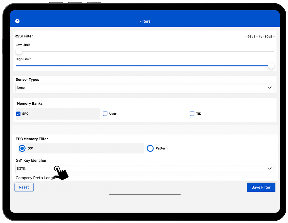TagMatiks Wedge gives you the ability to filter out the tags according to a specific scheme of encoding. RFID tags used in retail and in the Walmart mandate are encoded according to the SGTIN GS1 format.