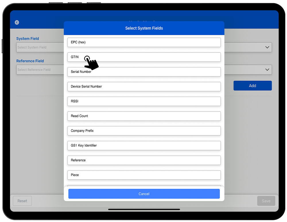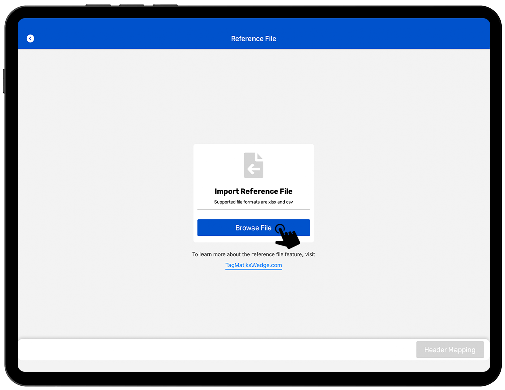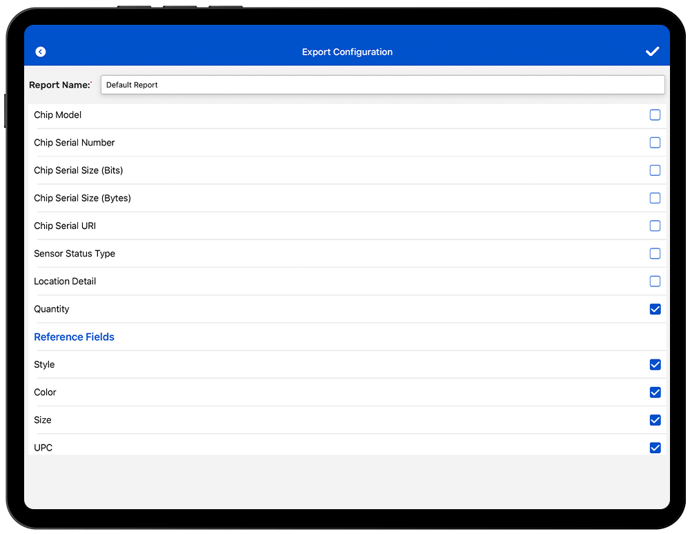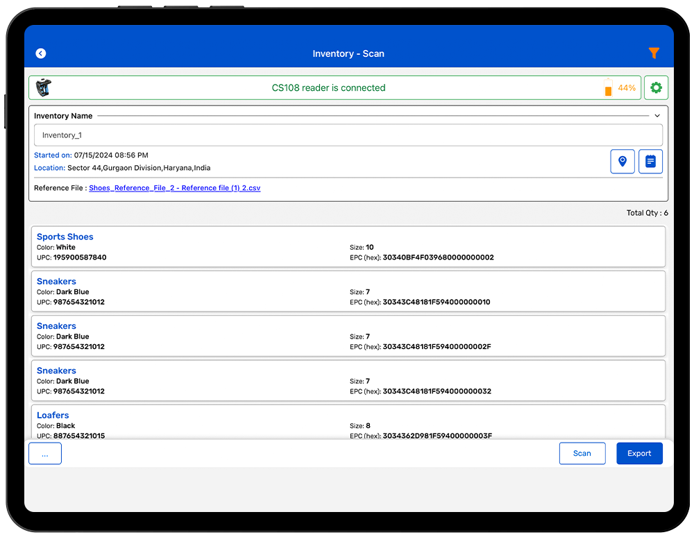 The Reference file feature is a csv or xlsx file containing all the necessary information which needs to be displayed at the time of inventory or exporting report of the inventory. Common examples in the retail sector are GTIN/UAN, EPC, Color, Size, SKU, Expiry Date, PO Number, Manufacturer etc.