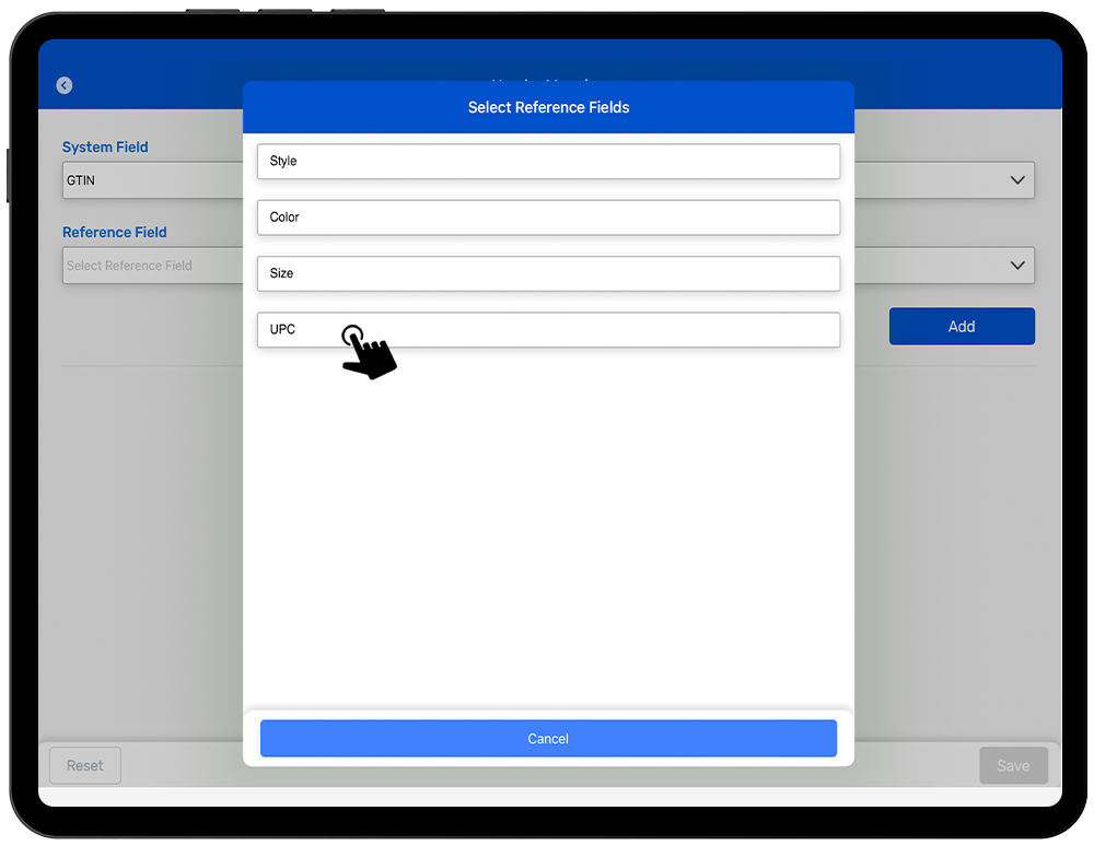 5.The application will show you the list of Reference Fields. You must select at least one field that you want to make it as a primary field to the default field. In this example, “UPC” is selected. As shown in Fig 1.2.