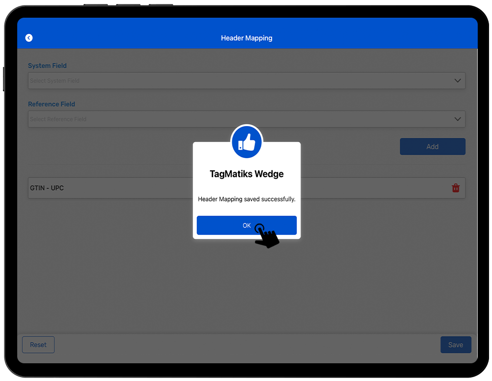 4. Click on the drop-down icon of “Reference Fields” to map the Header of reference file with the default selected field of the TagMatiks Wedge application.As shown in Fig 1.1.
