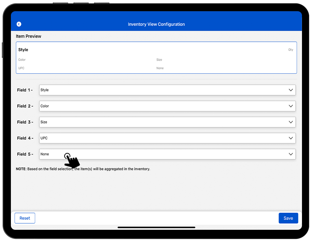 Select the fields that the user wants to be displayed at the time of inventory so that desired information is captured when doing the scan.