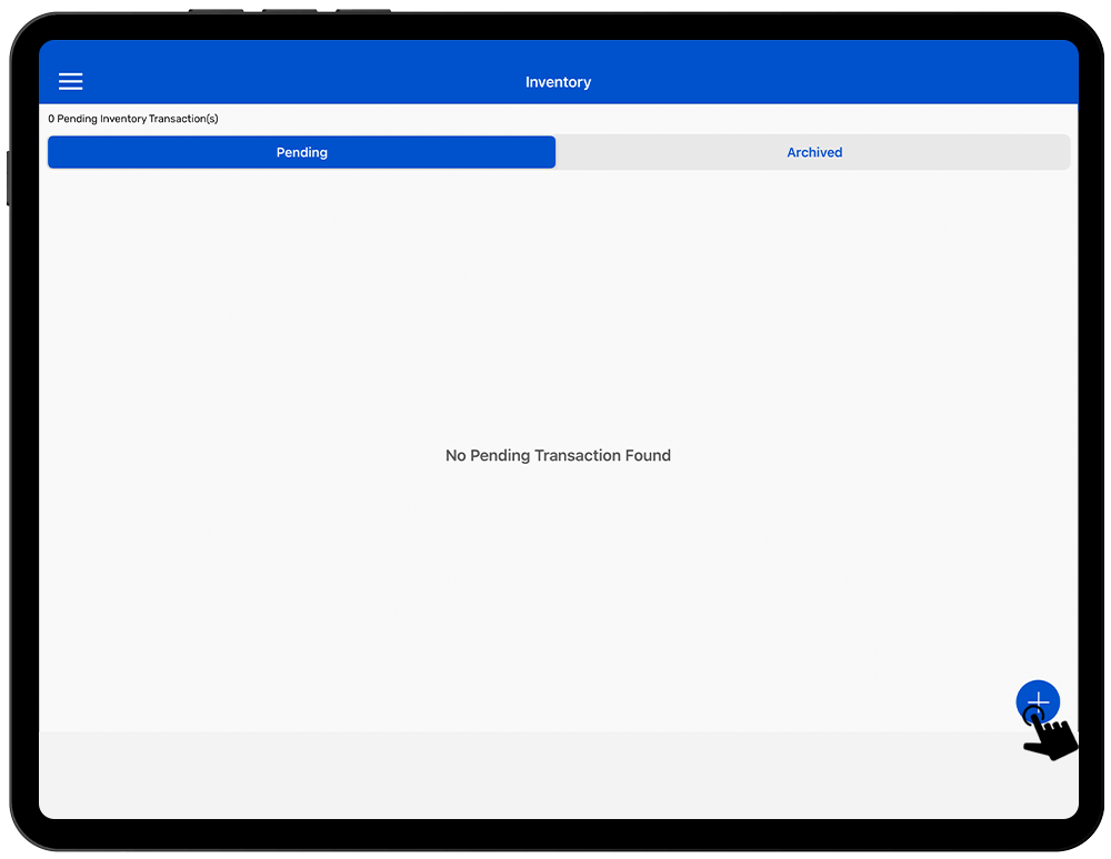 2. Then a new window will open, named: “Inventory”,Create a new Inventory transaction, by clicking on the “+” button on the right bottom of the application.As shown in Fig 2.7.