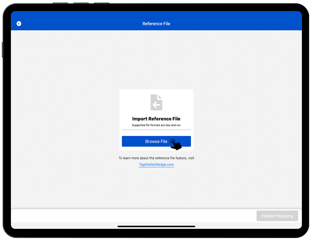 This document illustrates how your UPC list can be used as a “Reference file” and link or combine with the “TagMatiks Wedge” inventory data. This document will guide you the procedure to map the Headers of a Reference file and then show them as the Inventory attributes in TagMatiks Wedge application.