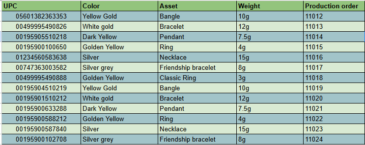 For creating a new Reference file, open an excel sheet and make entries in it. Please refer below table created in an excel sheet, incorporating UPC details as sample.