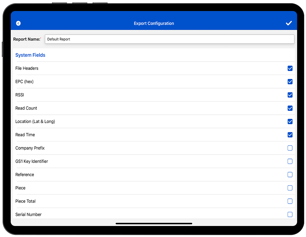 G. Setting up “Export Fields Configuration” in TagMatiks Wedge Application