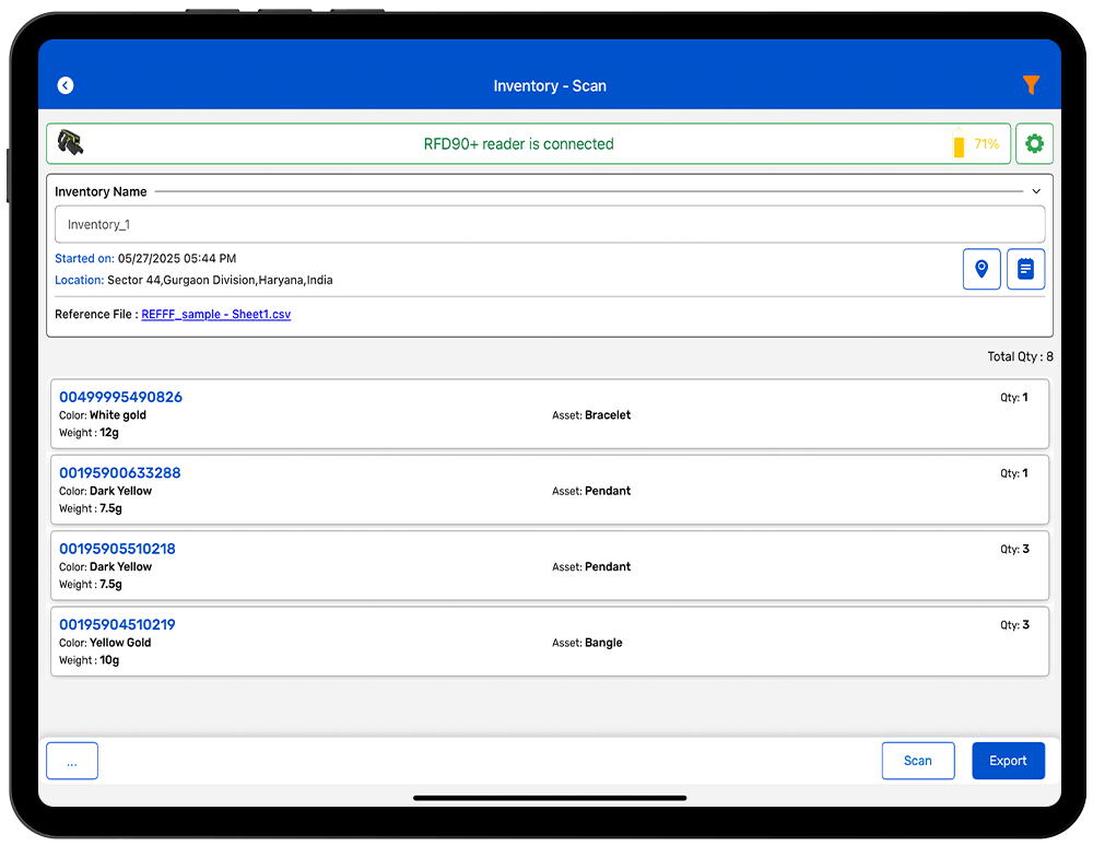 3. Then create a new Inventory and Click on Scan Button to scan the RFID Tags. As shown in Fig 3.1.
