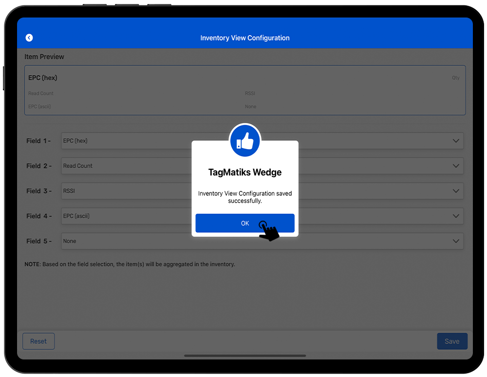 As RFID data is collected with the help of TagMatiks Wedge application, there is much information about the tag which is received by the application. This article guides on selecting the desired inventory fields which you want to view according to the use case.
