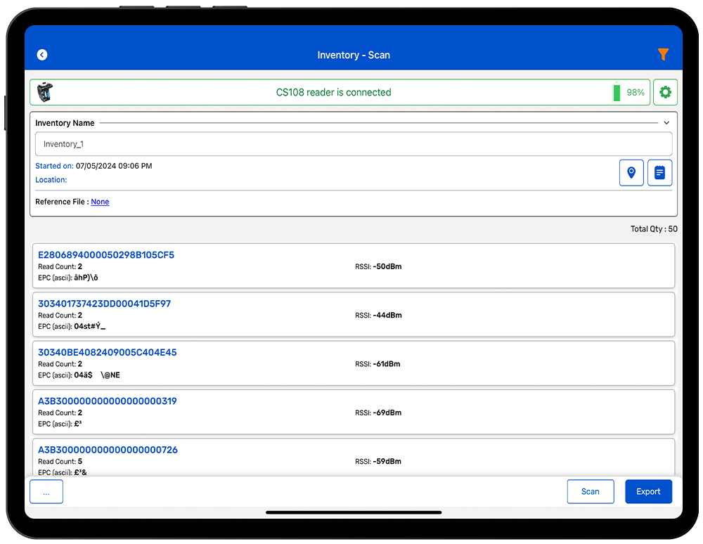 Note: You can now also view the EPC in Hex and ASCII format depending on the user requirement