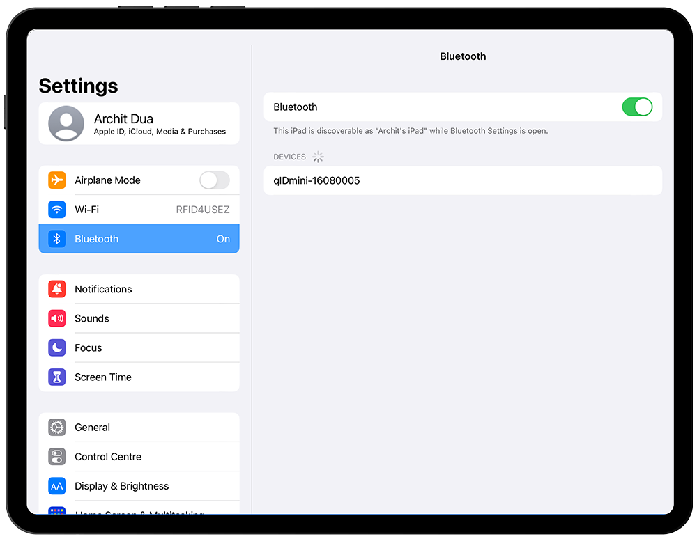 • Go to the Bluetooth settings of the device and select the “qIDmini-192103337” Device.
