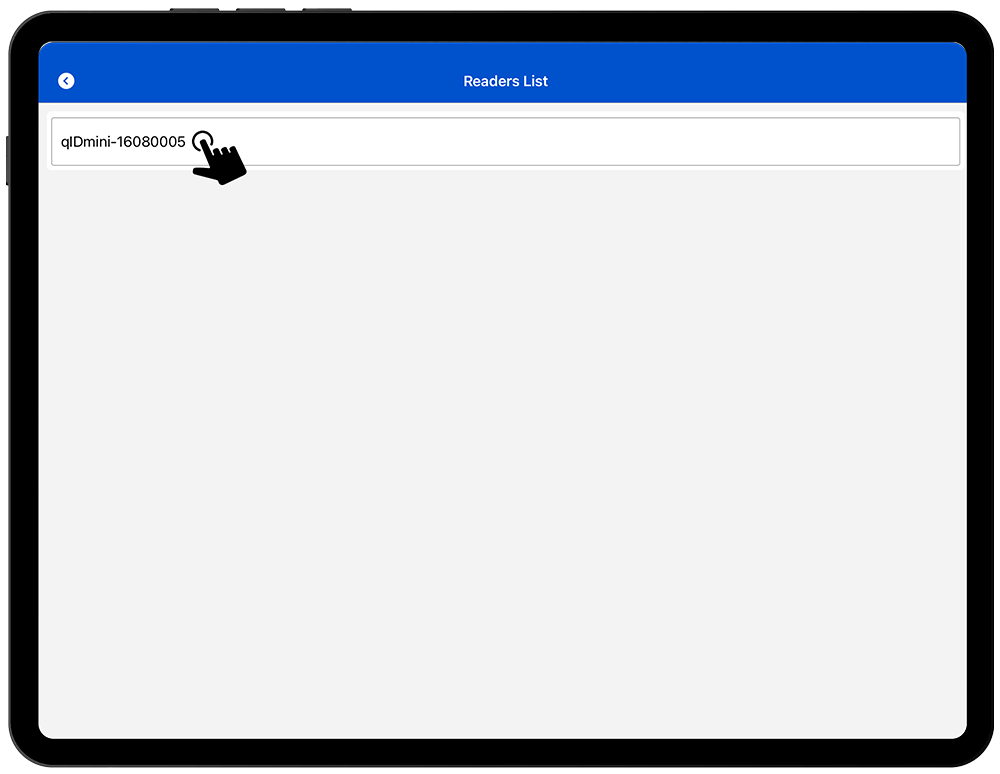 • Once the qID mini is connected, the application will show the Reader information on the Reader Settings Page.