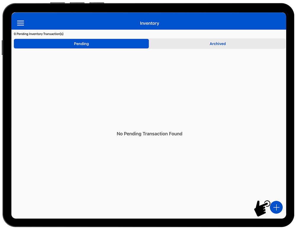 • Create a new Inventory transaction, by pressing the “+” button on the right bottom of the application.