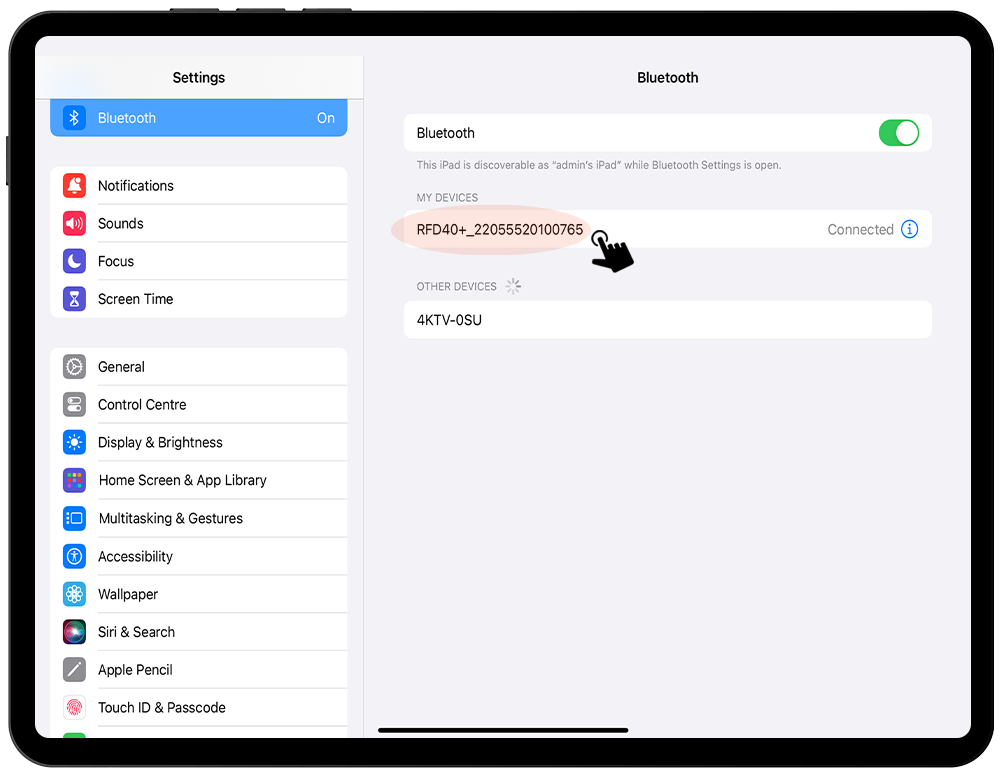 Please follow the steps below to pair your RFD40 reader:
