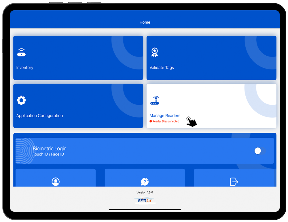 1. To read the RFID tags from Zebra RFD 40 reader; Click on the inventory button option from the home page of Application.