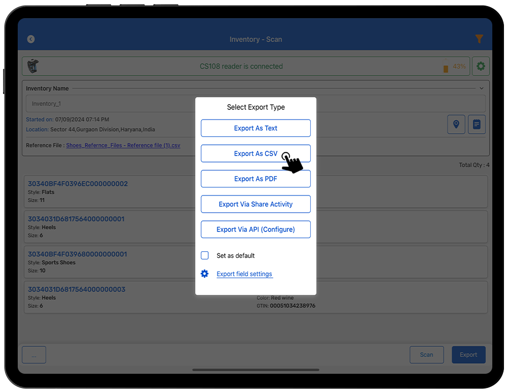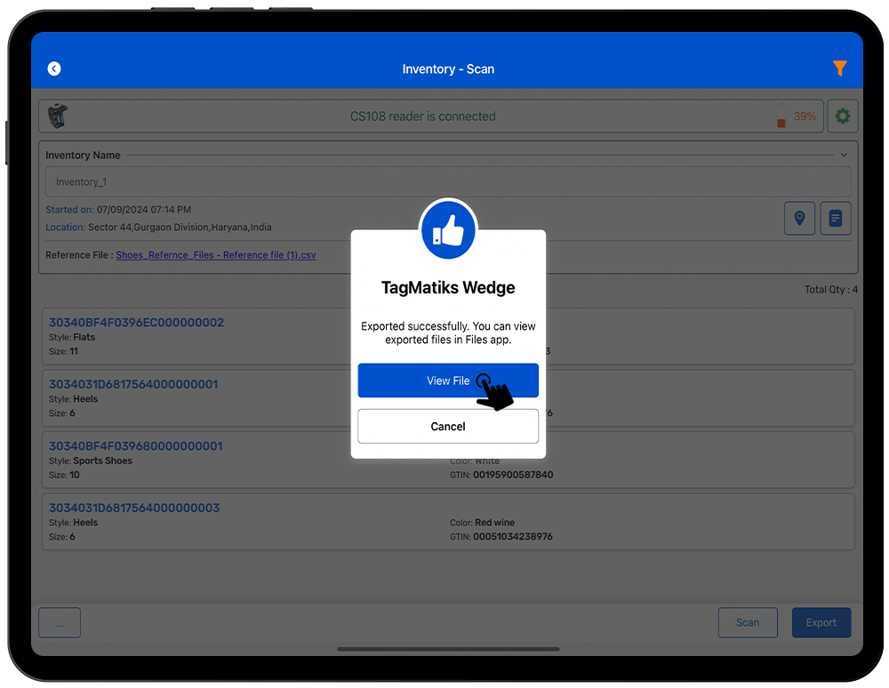 6.As a result, the inventory file of scanned items can be seen on the IOS device.As shown in Fig 0.7.